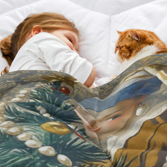 老叔叔 - 戴珍珠耳环的女孩拥抱圣诞树 40*30 英寸或 60*80 英寸