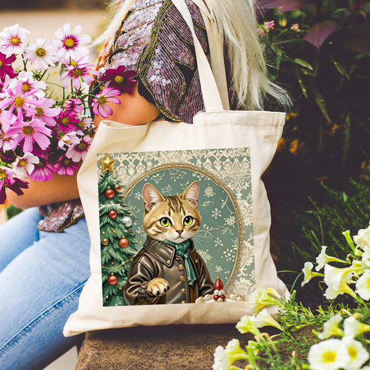 小猫 & 圣诞树 & 男孩帆布手提包