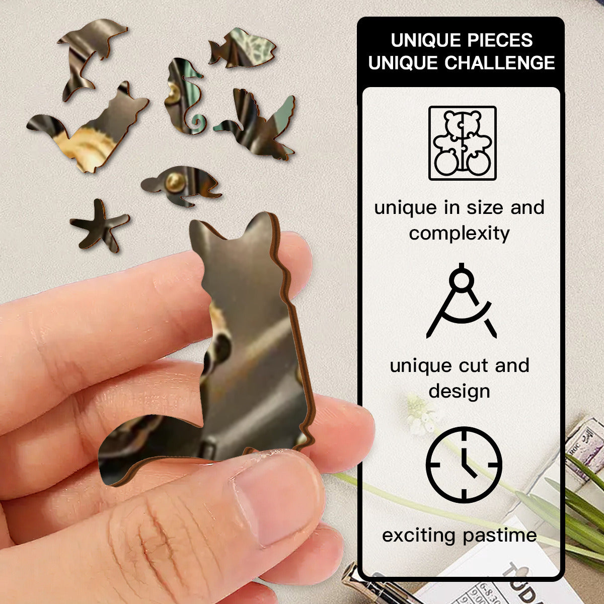 ·与传统拼图不同的是,不规则实木拼图的每一块都是由不同的动物组成,这类拼图往往比传统规则拼图更具挑战性