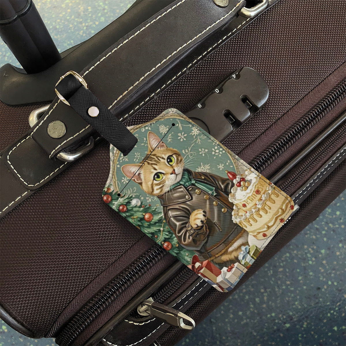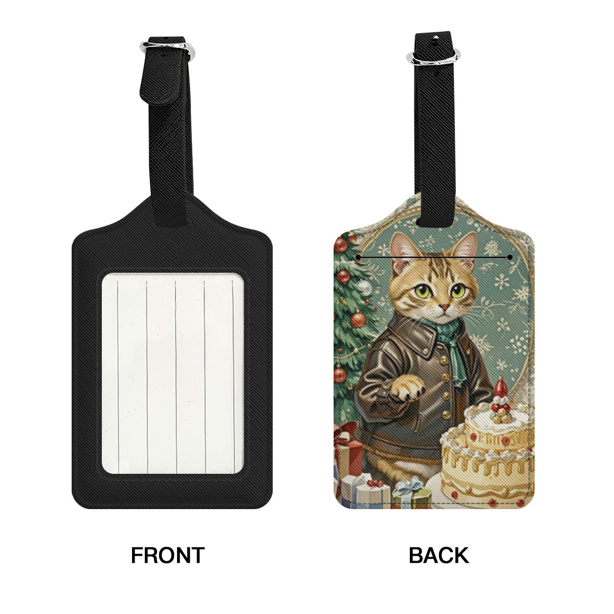 小猫 & 圣诞树 & 男孩 PU 皮革行李牌
