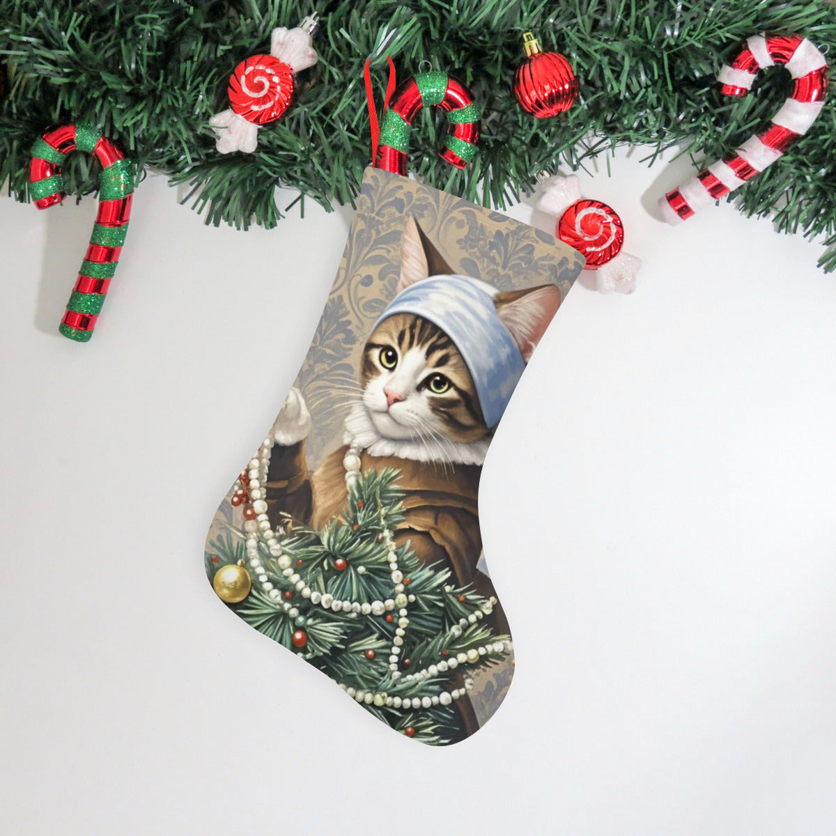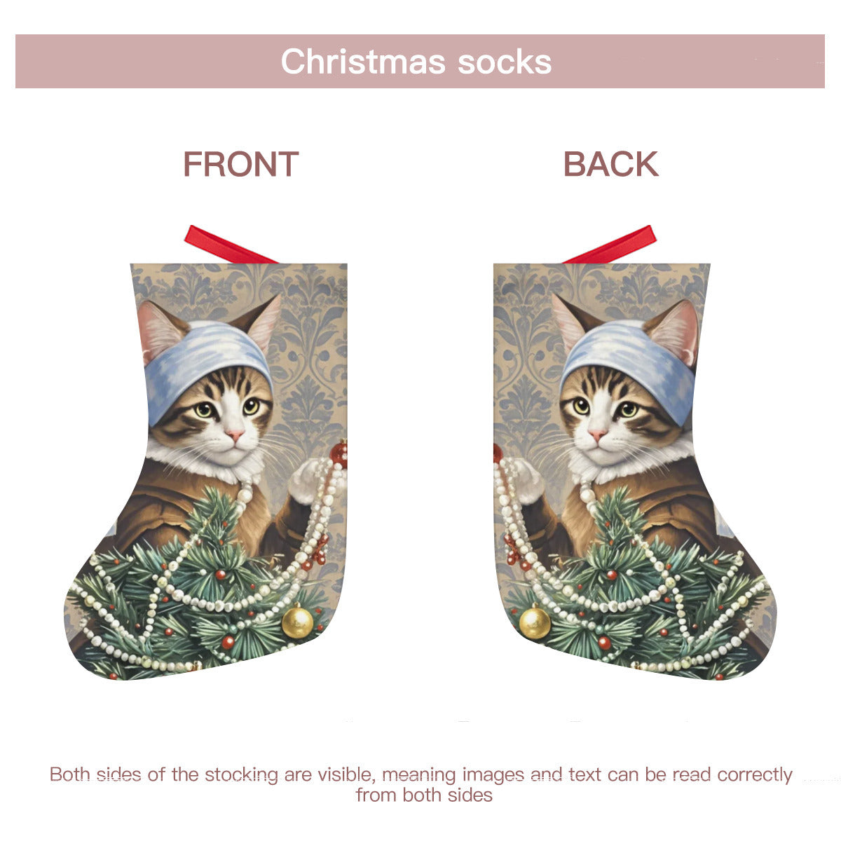 ·带有织带的圣诞袜,方便悬挂