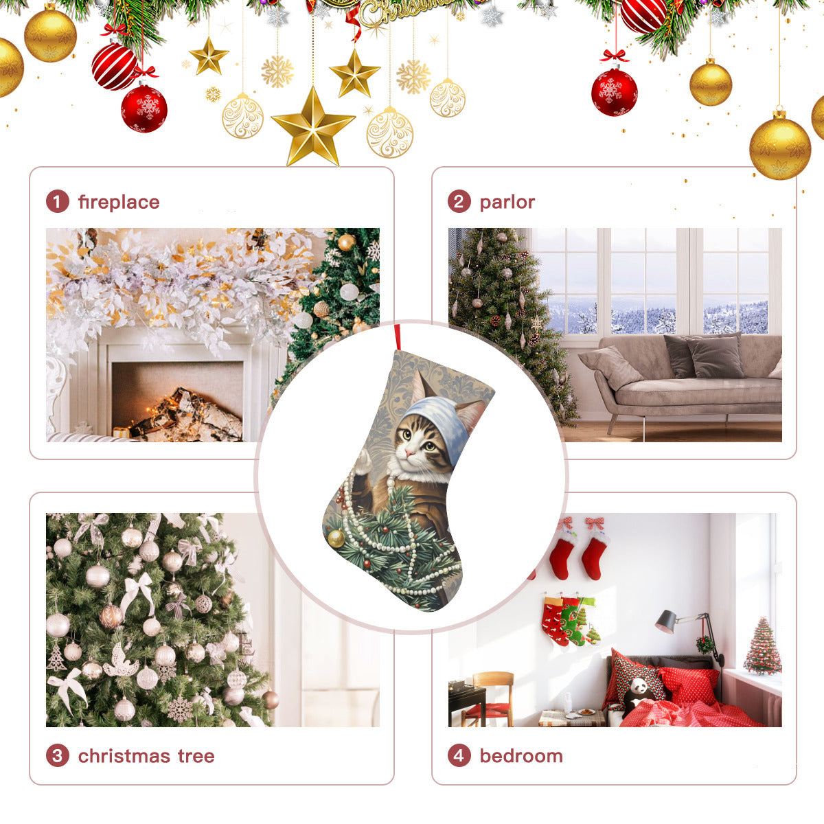 小猫 & 圣诞树 & 女孩圣诞袜