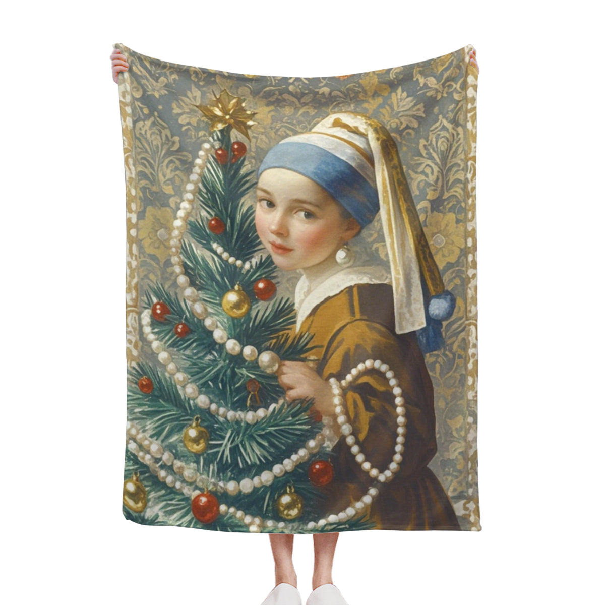 老叔叔 - 戴珍珠耳环的女孩拥抱圣诞树 40*30 英寸或 60*80 英寸